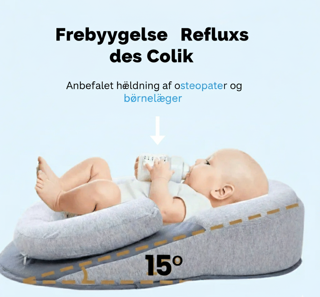 Babybee™ har en pædiatrisk hældning på 15° godkendt af specialister, som hjælper med øjeblikkeligt at lindre refluks og kolik.