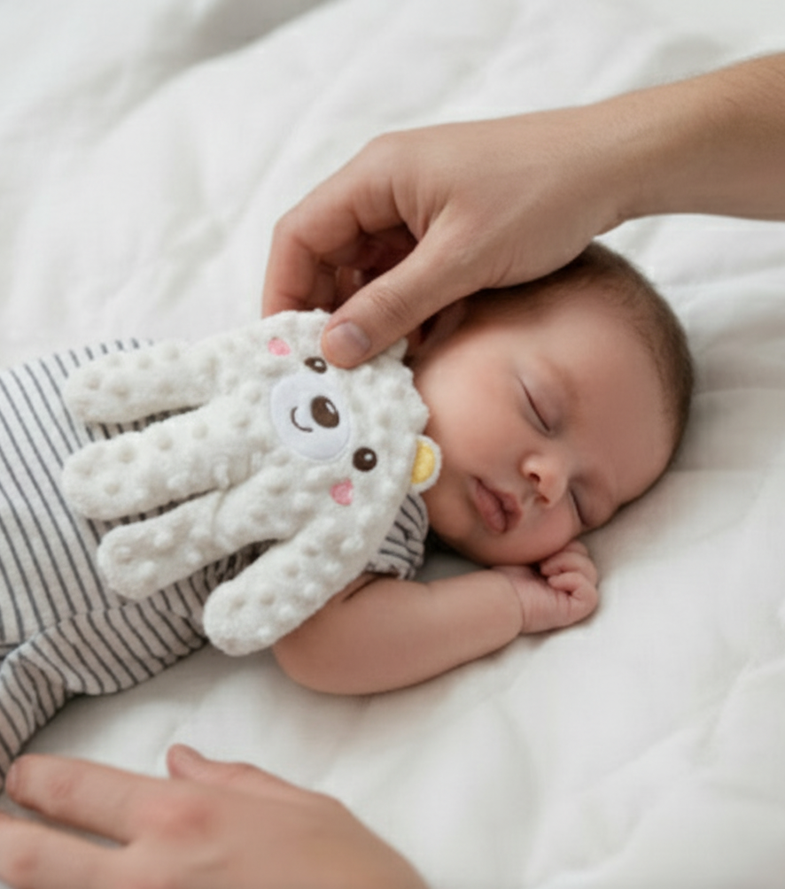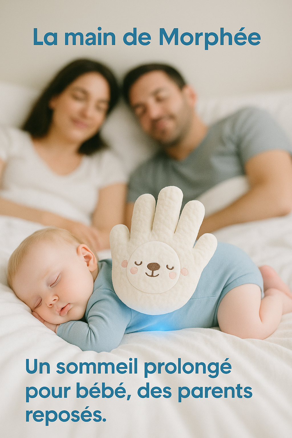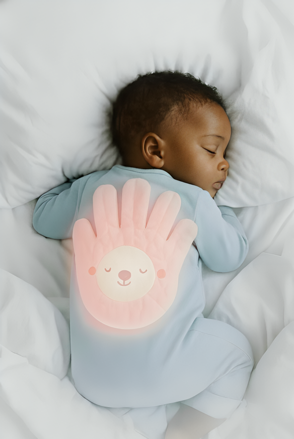 La main de Morphée™ recrée la sensation rassurante de votre main qui tapote doucement, pour des nuits complètes, des réveils apaisés, et un développement sain dès la naissance.